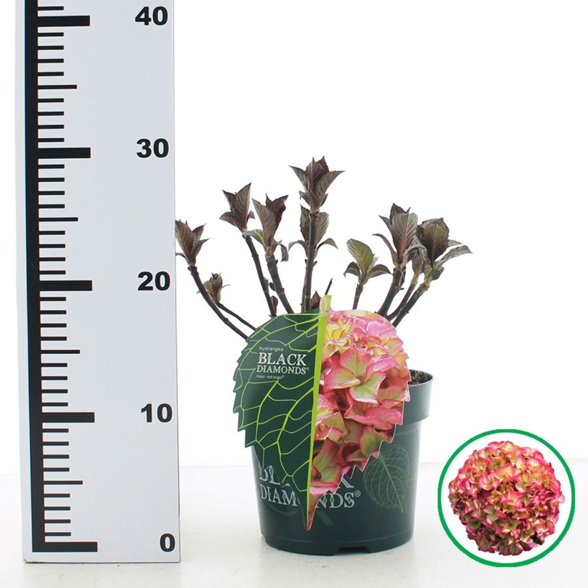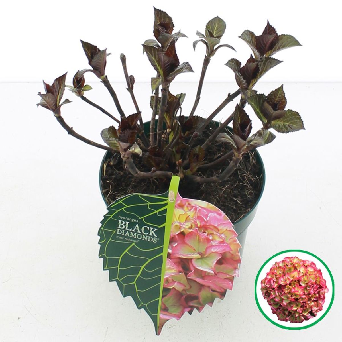 Hydrangea m. Black Diamonds Red Angel ('Red Angel')