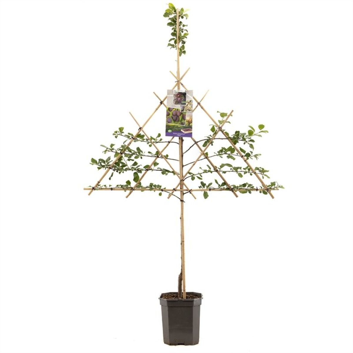 Maak bij het snoeien van de boom, gebruik van de techniek 'vormsnoeien'., Het doel van dit snoeiproces is het , vormen van een mooie, ronde, boomkroon met sterke gesteltakken., Bij een jonge boom zijn het de twijgen, die als toekomstige gesteltakken dienen., Snoei het jonge boompje zo, dat sterke, gesteltakken in een mooie vorm kunnen, groeien. Kies voor 4-6 gesteltakken en, snoei elke verlenging van de , gesteltakken jaarlijks voor de helft in., Zorg dat er voldoende ruimte blijft, tussen de gesteltakken en groeiende, zijtakken zodat er voldoende zonlicht, en ruimte in de kroon komt